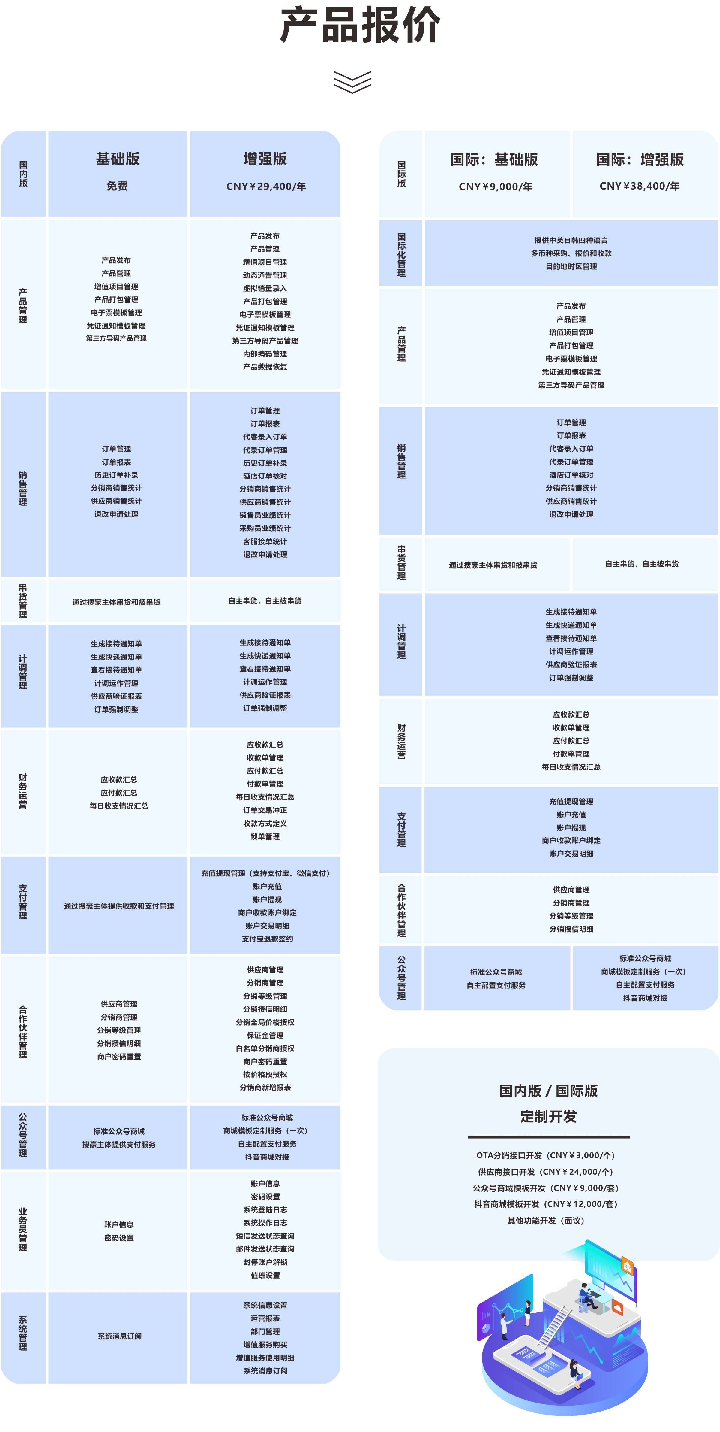 票务交易系统是一个解决旅游行业线上交易的销售平台,供应商可以通过平台自主管理产品、实时处理订单、查询销售报表,分销商可以通过Web方式和API方式了解产品详细、做出采购决定、完成线上支付,系统支持酒店、门票、交通、导游服务等旅游相关的商品类目。