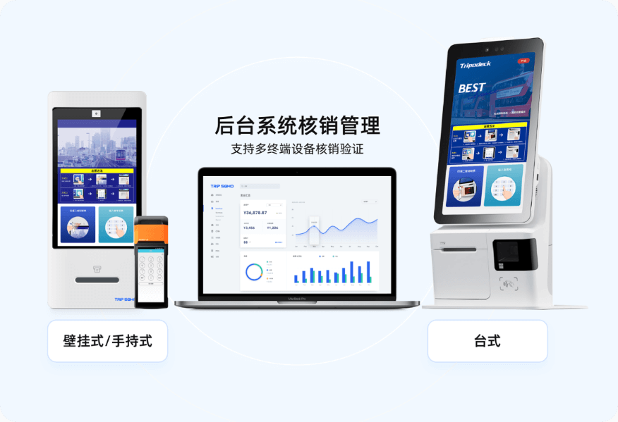 智能入园系统支持市面上常见的设备,包括手持核销码机、台式自助核销码机、立式自助核销设备,此外,我们还自行开发了自助的实物换票设备。该系统帮助景区、餐厅等商家实现入园的自动化,有效降低人工成本,并提升用户体验。